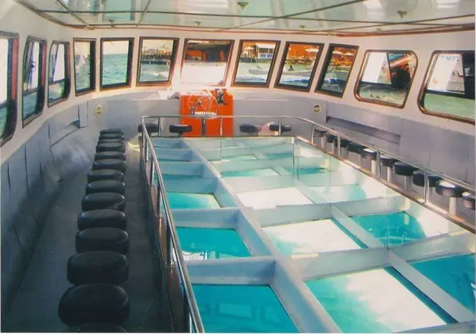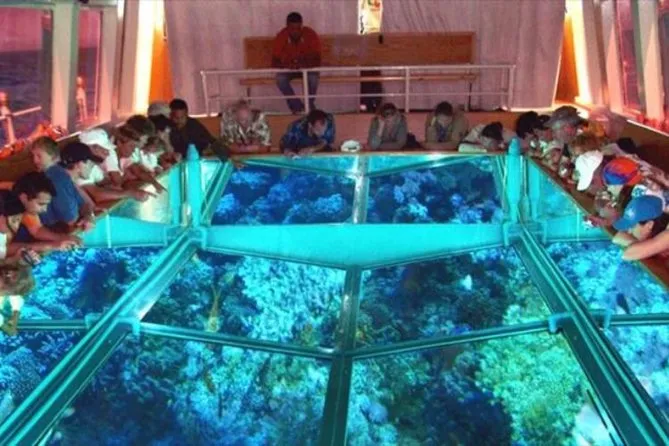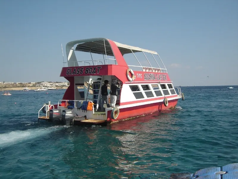 It’s a glass bottom boat through it you can enjoy a trip in the Red Sea seeing the coral reefs through the ship’s bottom.