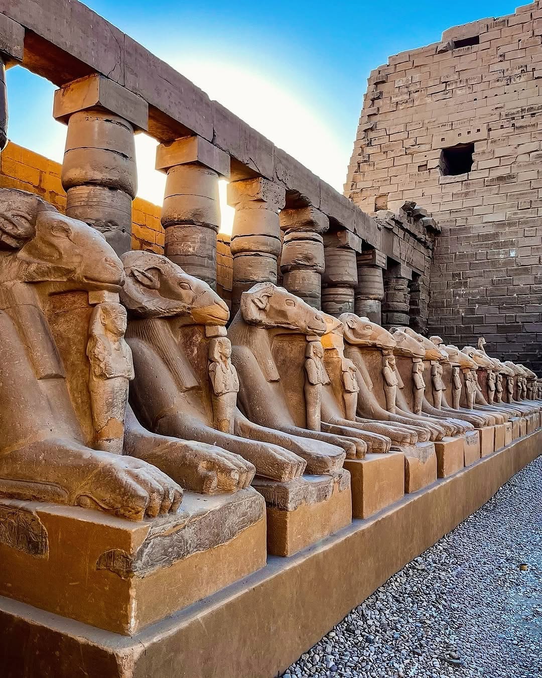 The Temple of Karnak, located on the east bank of the Nile in Luxor, is the largest religious complex ever built in ancient Egypt and one of the most awe-inspiring temple sites in the world. It served as the main center of worship for the Theban Triad, primarily Amun-Ra, and was constructed over the course of nearly 2,000 years, from the Middle Kingdom through the Ptolemaic period.